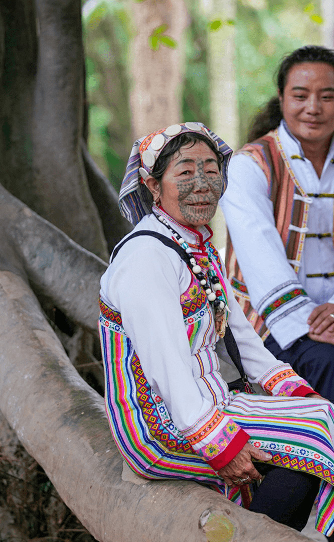 彝族在云南境內(nèi)約471萬人,是省內(nèi)人口最多、分布最廣的少數(shù)民族,主要聚居在金沙江、元江流域和哀牢山、無量山腹地。彝族是一個能歌善舞的民族,民間打歌、跳樂之風盛行,大三弦、跌腳舞久負盛名。火把節(jié)是彝族最具特色的民族節(jié)日。彝族村占地50余畝,三虎浮雕墻與虎頭內(nèi)祖師形象表現(xiàn)了彝族虎鷹文化。太陽歷廣場圖騰柱上有太陽、虎、火和八卦圖形象,周圍環(huán)繞著10個朝向不同的月球造型,外圓周有12生肖石雕。依山而建的“...